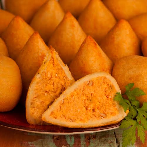 Amasse bem com as mãos e molde em formate de coxinha.